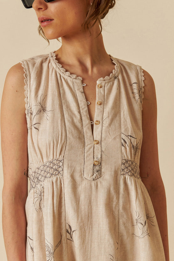 This organic cotton dress with crochet details and a smocked, fitted waist is undoubtedly one of the lightest and most special garments this season.