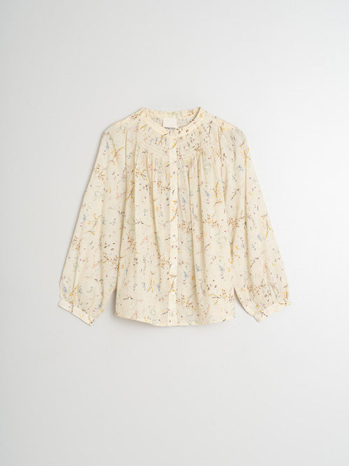• Cotton voile fabric with a floral print inspired by handmade flower paper, making these garments special and delicate, very much in the Indi DNA.